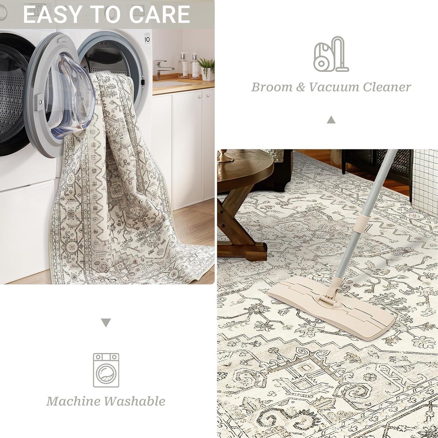 Yes! Our rugs are designed for effortless maintenance. Made with stain-resistant materials, they handle spills, pet messes, and everyday dirt with ease. A quick vacuum or spot clean keeps them looking fresh, ensuring long-lasting beauty in your home.